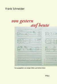 | | Frank Schneider | |  | | Von gestern auf heute Schriften zur neuen Musik |  | | hrsg. von Jürgen Otten und Stefan Fricke |  | | |  | | 30.00 EUR |  | | 978-3-89727-484-6 |  | | 403 S., br. | | |  |
