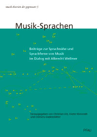 | | | |  | | Musik-Sprachen Beiträge zur Sprachnähe und Sprachferne von Musik im Dialog mit Albrecht Wellmer |  | | hrsg. Von Christian Utz, Dieter Kleinrath und Clemens Gadenstätter |  | | musik.theorien der gegenwart 5 |  | | 19.00 EUR |  | | ISBN 978-3-89727-494-5 |  | | 177 S., zahlr. Abb., br. | | |  |