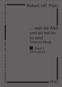| | Robert HP Platz | |  | | ...weil die Welt und wir mit ihr so sind Schriften zur Musik 1972-2014 |  | | hrsg. von Stefan Fricke und Hella Melkert |  | | Quellentexte zur Musik des 20./21. Jahrhunderts, Bd. 13.1 |  | | 35.00 EUR |  | | 978-3-89727-509-6 |  | | 404 S., Abb., br., 2014 | | |  |